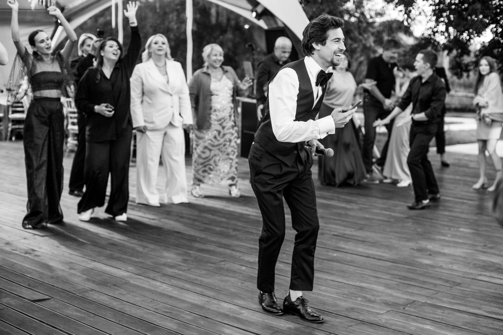 Мы создали уютную непринужденную атмосферу семейного вечера в испанском пригороде. Природный декор с преобладанием зелени, теплый свет ламп, испанская гитара, вино, тапасы, много танцев и смеха.
